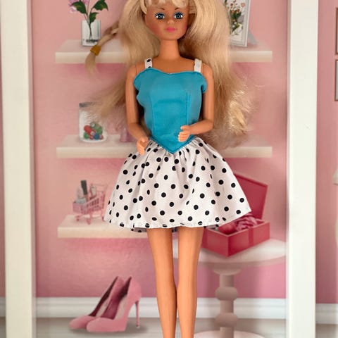 Vintage barbie dukke Petra i vintage kjole/ 80 tals