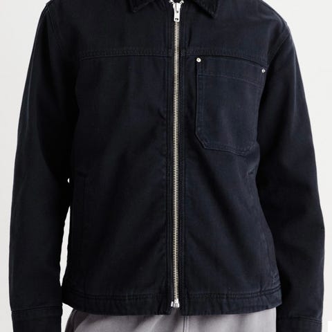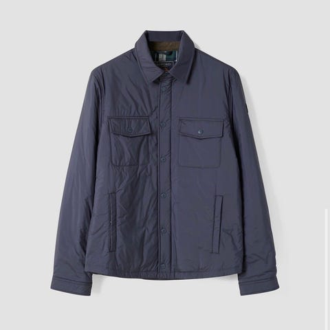 Ubrukt bomullsjakke i marineblå farge. Jakken er designet for menn, men vil si den passer til alle. Den egner seg til utendørs bruk.