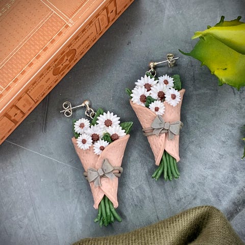 Håndlagde øredobber ca 2,5cm lange (fra krok til nederst på blomsten). Det finnes ingen like, hver øredobb blir forskjellig når man lager de selv 😊