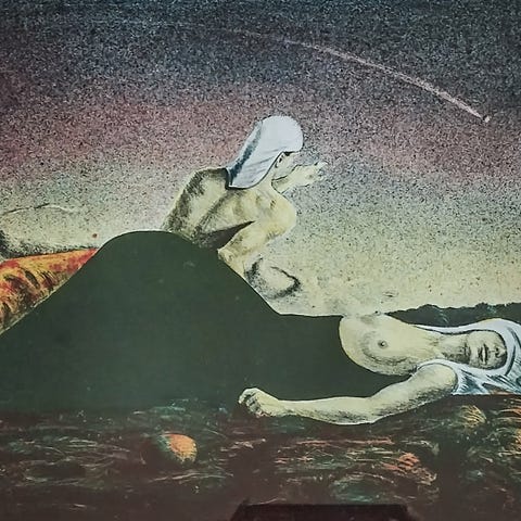 Akvarell av mannlig figur i mørke toner
