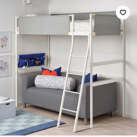 Pent brukt VITVAL loftsseng fra IKEA med ribbebunn og sengelommer