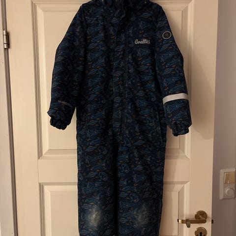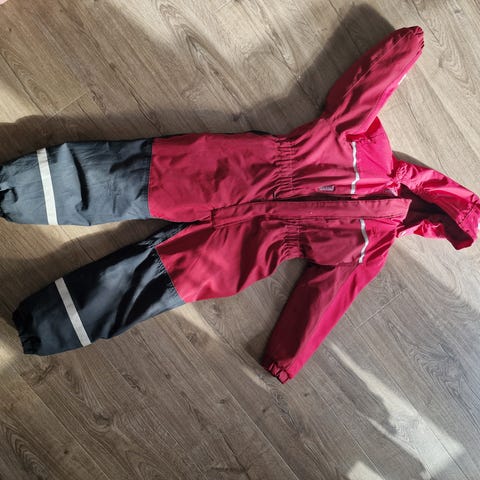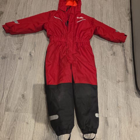 Pent brukt vinterdress strs 6 116-122. Den ene strikken er røket under på det ene beinet.