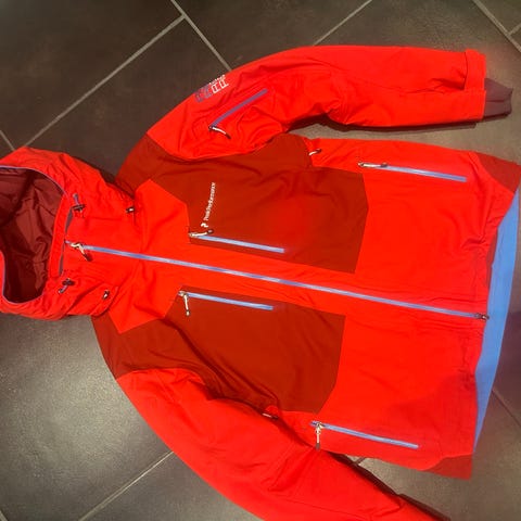 Selger toppmodellen av skijakke fra Peak Performance; Gravity Jakke i størrelse L, farge svart og blå.