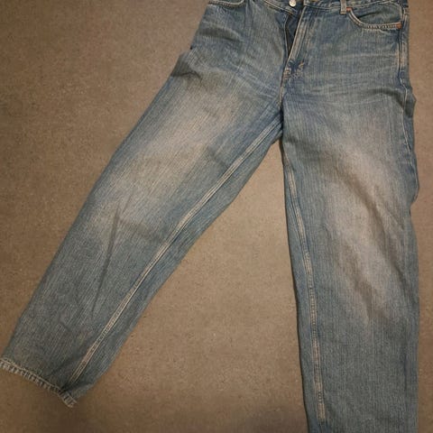 Weekday Denim bukser i svart farge, størrelse W34 og herrestørrelse M. Laget av denim materiale. Designet for hverdagsbruk.