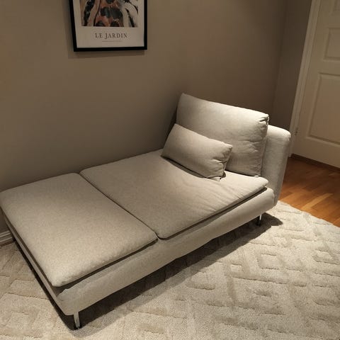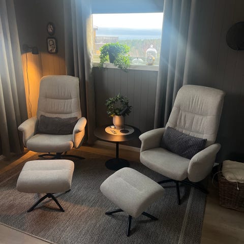 Puffen er fra 2015. Ukjent merke, men mener den er kjøpt på Skan møbler i Sørlandsparken. Ca.pris ny: 4500. Pent brukt. Ikke slitt. Puffen har en transportskade i ene kortveggen. Den vises inni, men ingenting utenpå, og den virker ikke inn på bruk (Inkludert å sitte på den, som går helt fint). Må hentes på Sødal, Kristiansand.