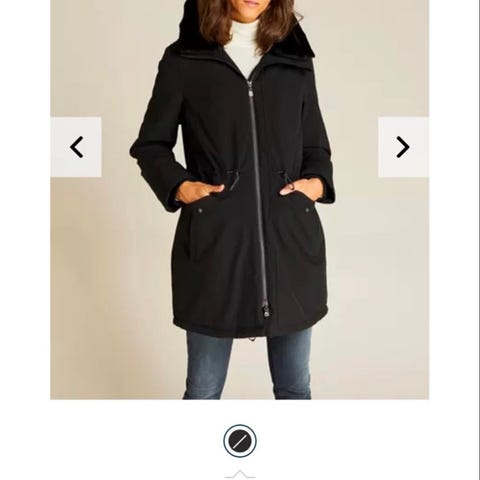 Parajumpers i brun farge, størrelse M for kvinner. Laget av polyester materiale. Fylt med dun og med pels på hetta. Designet for utendørs bruk med isolerende egenskaper. Nydelig farge, god og varm.