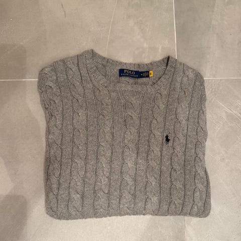 Lyseblå polo cable knit i str M, ingen bruksmerker