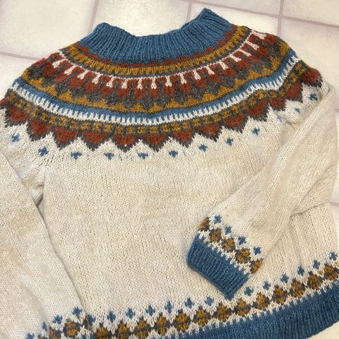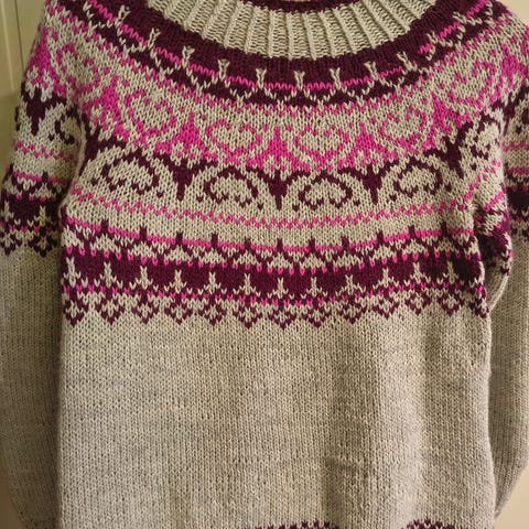 Aftur- hjemmestrikket islandsk genser i Lettlopi Str M