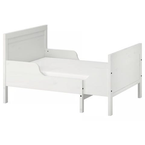 IKEA Uttrekkbar seng for barn med oppbevaringsskuff under sengen. Sengen har en trelamellbunn og er laget for å gi ekstra soveplass ved behov.