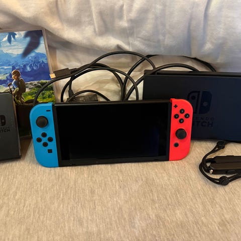 Nintendo Switch spillkonsoll med Joy-Con kontroller og tilbehør