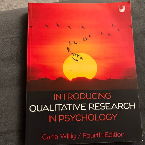 Carla Willig, «Introducing Qualitative Research in Psychology» pensumbok, fjerde utgave. Boken dekker kvalitative forskningsmetoder innen psykologi og utdanning, og gir en grundig innføring i emnet. Utgitt av Open University Press (McGraw Hill)