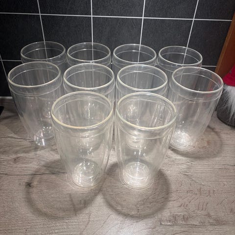 Ett par av glassene er brukt 1-2 ganger, ellers stått i skapet. Alle er vasket i oppvaskmaskin. Som ny.