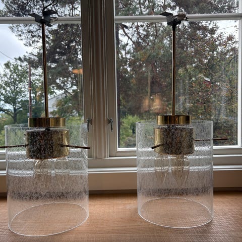 - de to som er koblet sammen er ledningen mellom lampene 178 cm, og fra den ene lampa til stikk er 240 cm.