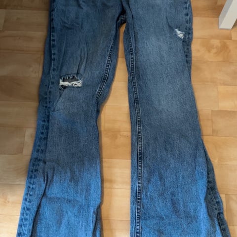 Jeansen er i utgangspunktet høy på livet og lukkes med glidelås. Jeg har valgt en litt større størrelse enn hva jeg egentlig bruker, for at den også kan sitte noe lavere.