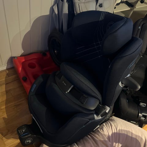 Cybex solution x2-fix. Noen merker (se bilde), ellers pent brukt. Brukt som ekstra sete de siste årene. Kan brukes med og uten isofix. Ikke kollisjon eller andre skader.