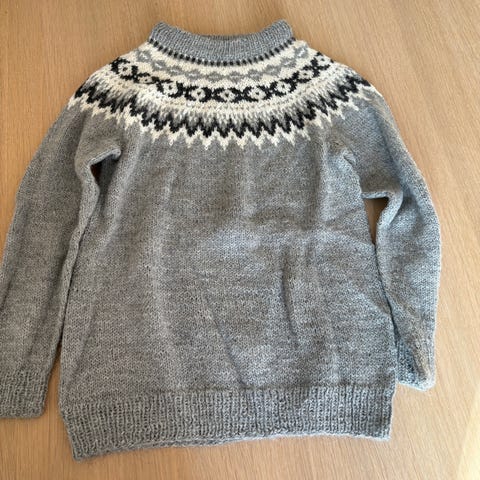 Hjemmestrikket genser 10-12 år. God og varm. Selges kr 199