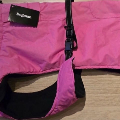 Dogman vinterdekken Pom Vinrød: varmt dekken til hund str 40. Brukt på flatcoated retriever valp. Har derfor nå vokst ut av dekkenet. Det er nyvasket. Kun blitt brukt noen få uker, og få ganger. Godt og tykt dekken. Kjempe god fasong. Vi er så fornøyd med dekkenet at vi har bestilt det samme i en større størrelse.