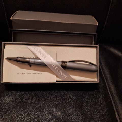 Selger en Visconti Homo Sapiens Dark Age fyllepenn med Medium (M) nib. Pennen er pent brukt og i veldig pen stand. Ikonisk modell laget i Viscontis karakteristiske lava-resin, kjent for solid konstruksjon og behagelig skrivefølelse.
