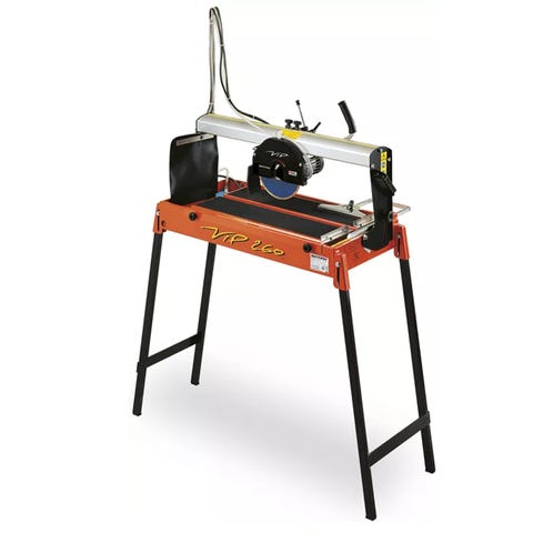 Battipav Vannsag Vip, er en enkel og praktisk sag for våtkapping av keramiske fliser og naturstein. Leveres komplett med diamantblad og sammenleggbare ben.