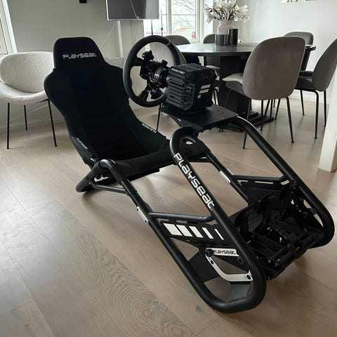 Playseat Playseat Throphy racerstol med justerbar ramme og stofftrekk. Designet for bruk i simracing, gir støtte og komfort under lange spilløkter. Passer til ulike set-up og kan foldes for enkel oppbevaring.