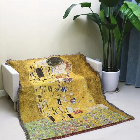 "The kiss" inspirert jacquard veggteppe/ pledd/ veggdekor dekor/ sofateppe/ sengeteppe/piknikteppe/borduk/ gulvteppe
