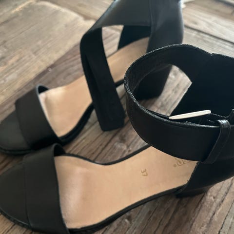 Roots Hæler i størrelse 37, svart farge. Skoene har en klassisk hæl (7 cm) og er laget av materialer som gir en enkel og tidløs stil.