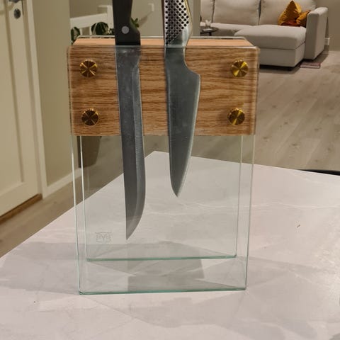 Selger hexagon knivblokk fra Øyo. Litt skitten, har ikke (og kommer ikke til å) vasket den før salg. Lite brukt da vi kjøpte den kort tid før vi kjøpte nytt hus, og i det nye huset var knivblokk en integrert del av kjøkkenet.
