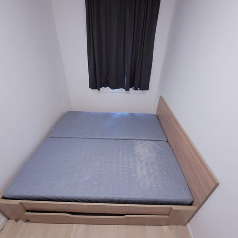 Det er noen lilla merker midt på madrassene, men disse er nesten ikke synlige – jeg har brukt et lilla sengeteppe under for å holde madrassen jevn.