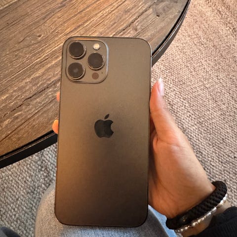 Selger en pent brukt Apple iPhone 13 Pro mobiltelefon med 128 GB lagringskapasitet. Batterikapasitet er oppgitt til 80% sammenliknet med når telefonen var ny.