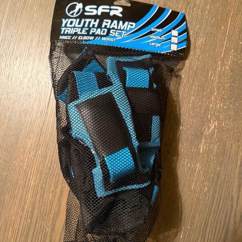 Beskyttelser for håndled, kneer og albuer. Størrelse S. Fra 9 til 15 år.