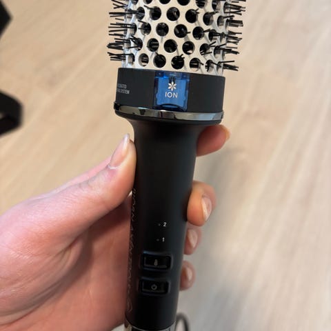 elektrisk rundbørste. Egnet for styling av hår ved hjelp av varme.