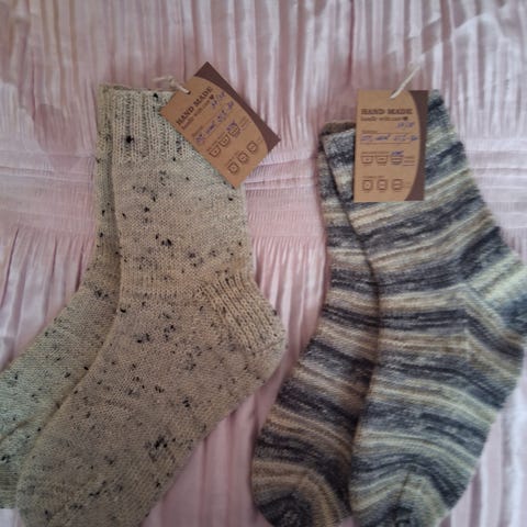 Håndstrikket sokker fra tynn ull garn i str 42/43 selges for kr 335 plus evt. frakt.