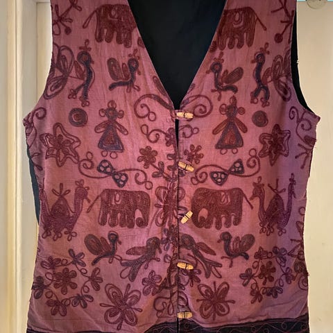 Selger denne unike vintage bomullskjolen da den ikke blir brukt nok. Hel og pen uten bruksmerker. Fin fasong, kul knappedetalj. Merket Bla-Bla