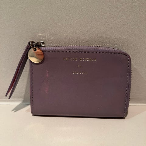 & Other Stories lommebok for dame i lavendelfarge. Lommeboken har glidelås og rom for oppbevaring av kort og mynter. Synlig brukt.