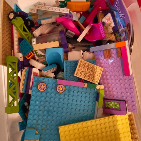 LEGO Friends Lekehus byggesett i flere deler med farger i hvitt, lilla og grønt. Settet inkluderer figurer og tilbehør for lek og sammensetting.
