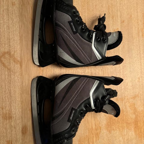 GRAF barneskøyte for ishockey i størrelse 33. Skøyten har justerbare spenner for god passform og støtte. Materialet består av slitesterk plast og tekstil, designet for barn.