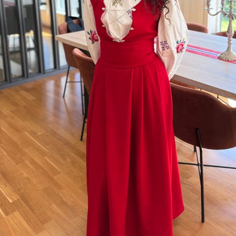 Nordklar bunad lue – håndbrodert, sydd av meg, bomullsstoff. Aldri brukt.”
