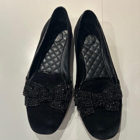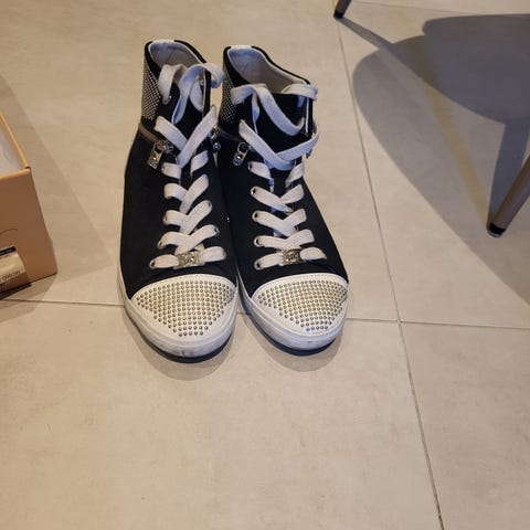 Skoene er pent brukt, hele og fine, men det er en gulaktig skjolde under stortåen på venstre sko, derfor selges skoene så billig. Dette synes minimalt når man har skoene på seg. Mye sko igjen på disse, som man kan ha glede av fremover.