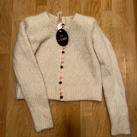 Ny ubrukt cardigan fått til jul, men er ikke helt min stil.