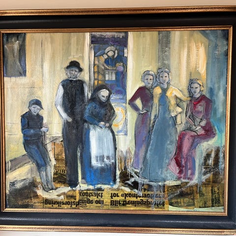 Maleri som viser et strandlandskap med sti, gjerder og sanddyner i gråtoner. Bildet har en rolig og naturlig atmosfære, egnet for dekorasjon i hjem eller kontor.