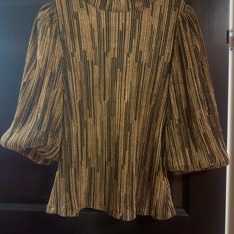 Høyhalset genser for dame i størrelse M, laget av ullmateriale i brun farge. Genseren har en høy hals og er designet for kvinner.