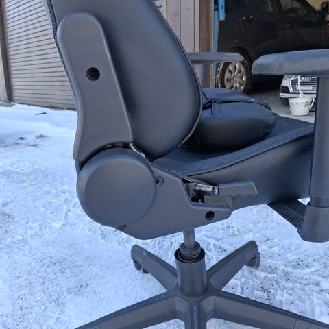 Piranha gaming stol med håndlenere, justering av rygg og kan justere sittehøyde.