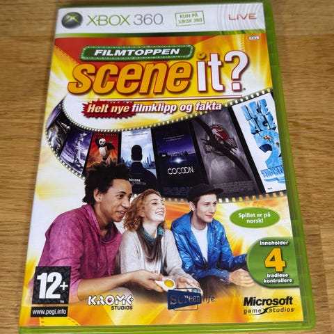 Scene It? Xbox 360 spill. Inkluderer originalt spill og etui. Spill for Xbox 360-plattformen med fokus på filmrelaterte spørsmål og utfordringer.