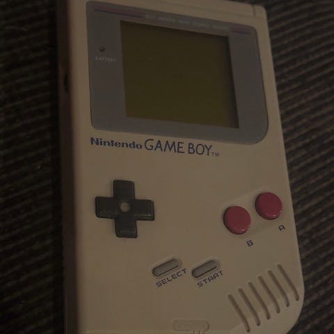 Nintendo Game Boy med svart farge. En bærbar spillkonsoll med skjerm og kontrollknapper, designet for håndholdt bruk.