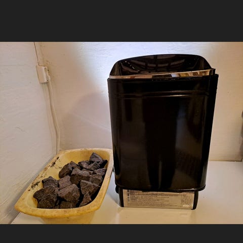 Harvia The Wall elektrisk badstuovn med rustfritt stålutførelse. Designet for veggmontering i badstuer. Kjøpt ny på Bauhaus vår 2025, kvittering medfølger