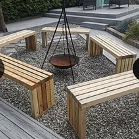 Solid hagebenk i metall. Brukt, med noe overflaterust, men hel og stabil. Perfekt prosjekt for oppussing. Selges som den er.
