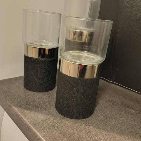Nyyyyyydelig lysestake, eller bare som dekor. Denne skiller seg enormt ut i stua. Den er rålekker , spesielt på et speilfat.. utrolig fint med den klare gjennomsiktige og så den lyse klare rosa fargen.