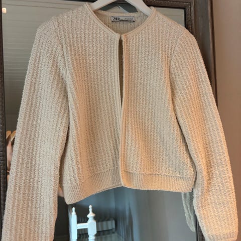 strikkejakke med kappe str S fra Zara, aldri brukt med lappen på enda. Nypris var 659,-