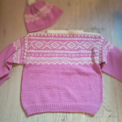 Ullgenser jente størrelse 146 beige med rød mønster