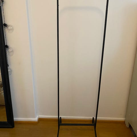 Selger et klesstativ med skohylle fordi det ikke brukes lengre. Ca. 100x45x155 cm.